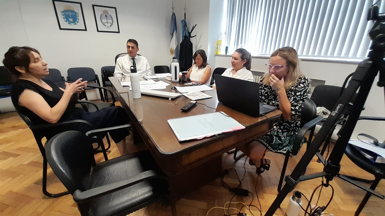 La mesa examinadora estuvo integrada por miembros del Consejo de Fiscales: Cristian Olazabal, María Laura Blanco y Andrea Rubio; Fabián Nesprias responsable de Recursos Humanos de la Procuración General y el coordinador provincial del Servicio de Asistencia a la Víctima del Delito (SAVD), Luis Amarfil, éstos últimos por videoconferencia.