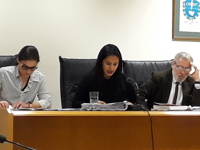 El tribunal de debate fue presidido por Gladys Olavarría y conformado por los jueces Daniela Arcuri y Miguel Caviglia; por el Ministerio Público Fiscal se hizo presente Martín Cárcamo, fiscal general; el menor víctima fue representado también por Andrea Mac Garva, asesora de menores; en tanto que la defensa de A.E.O. fue ejercida por Esteban Mantecón, defensor público.