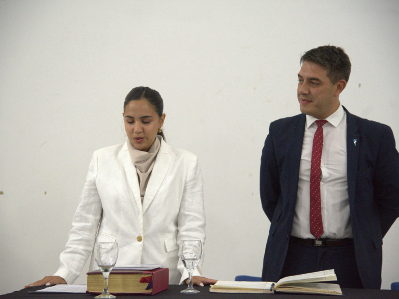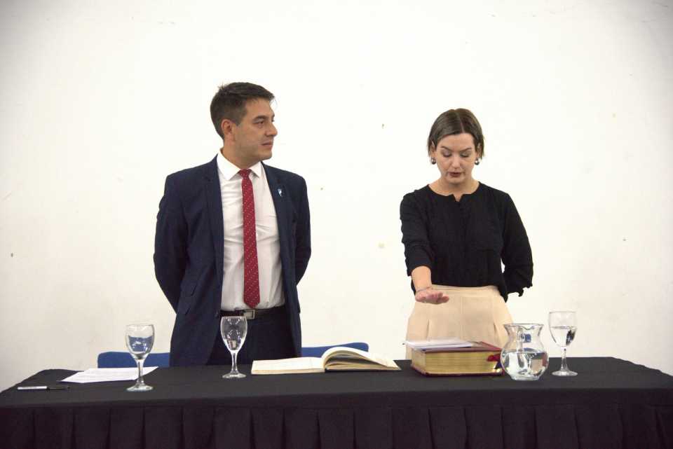Durante la ceremonia se dio lectura a la resolución de nombramiento firmada por el Procurador General de la Provincia, Dr. Jorge Miquelarena.