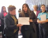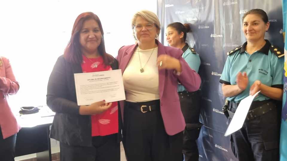 Recibieron el diploma que lleva la firma del Procurador General, Jorge Luis Miquelarena y de la Fiscal Jefa, María Bottini: representantes de la Comisaria de la Mujer Trevelin y Esquel, Cumelcan, FADAES, Fauna Urbana Esquel, Equipo de Protocolo de Agudos Hospital Zonal Esquel, la Segunda jefa de la Unidad Regional Esquel, la Dirección de Género y Diversidad de la Municipalidad de Esquel, concejales y una consejera del Consejo de la Magistratura del Chubut.